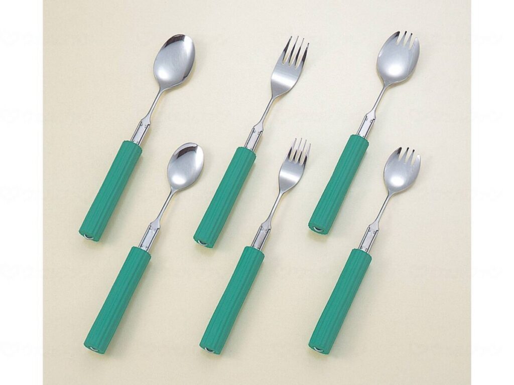 手に障害のある方や、握力の弱い方にも使いやすく、介護に適したカトラリーです^^