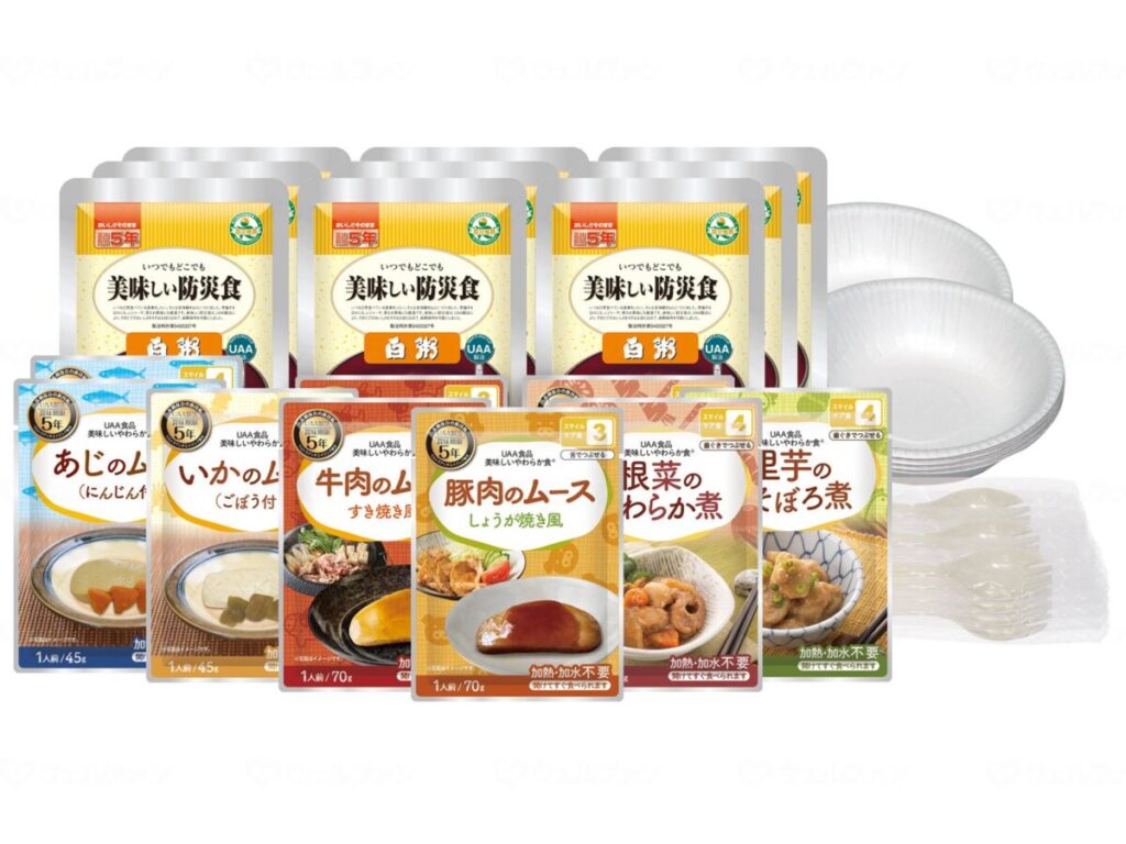 そしゃく配慮が必要な人向けの長期保存食セット。